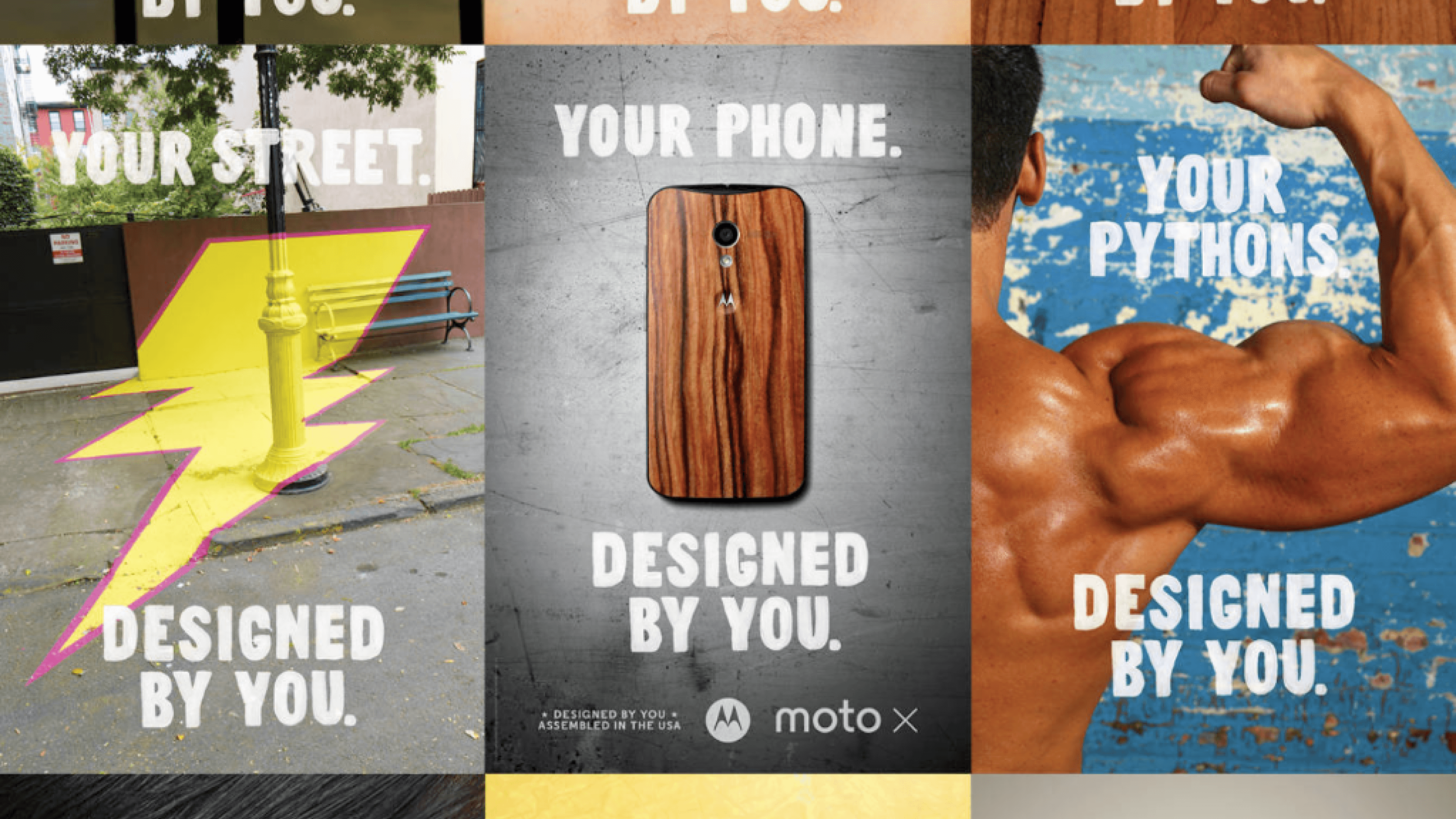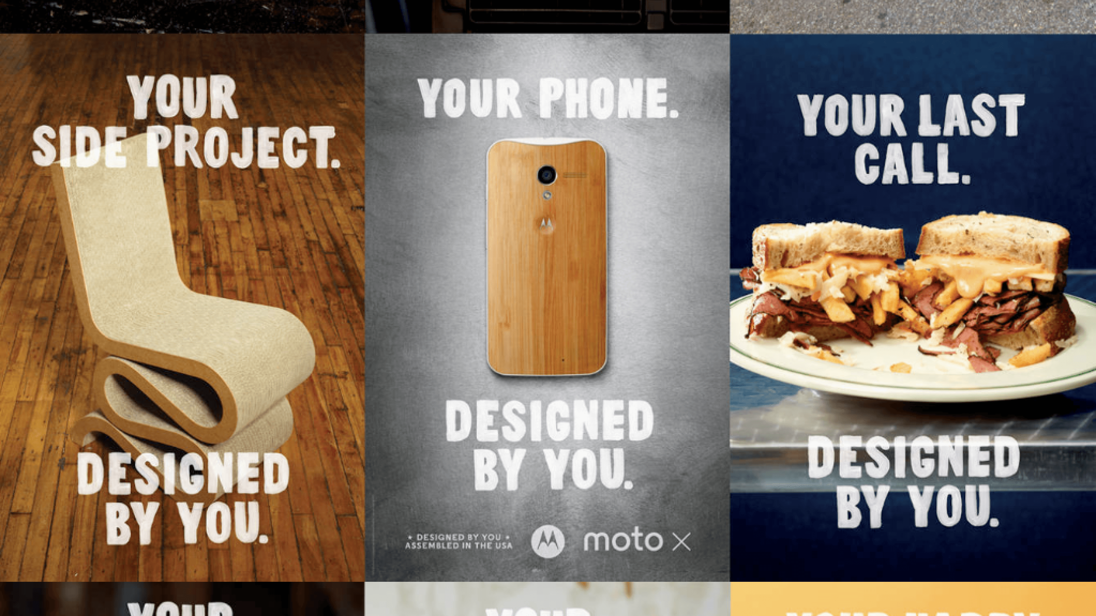 The goal of Motorola's campaign "DESIGNED BY YOU," was all about giving their users the ultimate decision-making authority when it came to customizing their phones. Countless combinations, styles, and aesthetics can be conceived through Motorola's ability to not look like the same old phone that everyone else has in their pocket. Users should be able to identify with their phone, as it is an extension of themselves.