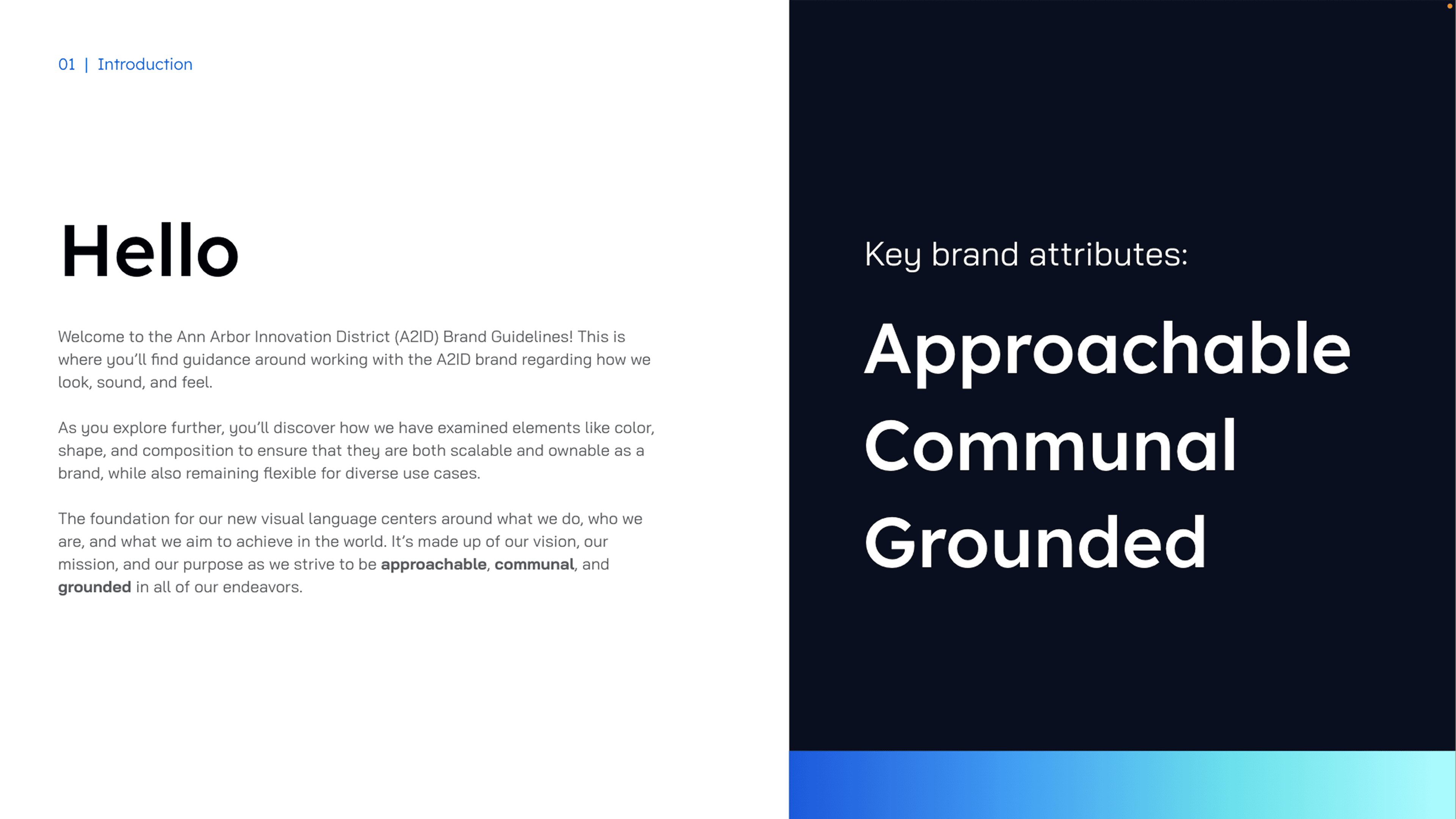 The visual identity for the Ann Arbor Innovation District (A2ID) was engineered to bridge the city’s rich industrial heritage with its future as a premier tech and research hub. At the center of the system is a custom intertwined "AA" monogram, designed to symbolize connectivity and progress through fluid, overlapping geometries. By balancing the logo with a structured typographic system and kinetic gradients, this identity creates a scalable language that transitions from complex wayfinding to interactive digital interfaces. The result is a cohesive visual ecosystem that positions A2ID as a cutting-edge innovation destination grounded in communal stability.